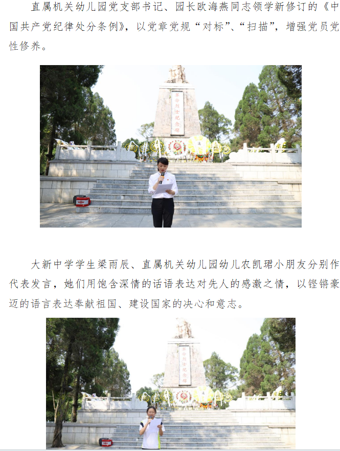 | 緬懷先烈承遺志:新錳集團(tuán)黨委、大新中學(xué)黨委、直屬機(jī)關(guān)幼兒園黨支部聯(lián)合開(kāi)展“固定黨日+”活動(dòng) |
